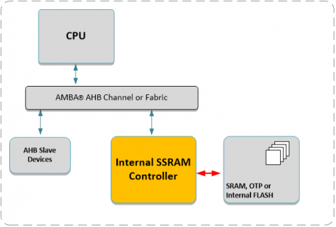 The AHB SRAM Controller provides a standard AHB interface to translate AHB bus reads and writes into reads and writes with the signaling and timing of a standard 32-bit synchronous SRAM.