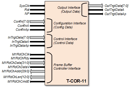 The T-COR-11 FPGA IP core for tracking objects in video stream images is designed for use in vision systems intended for various applications (security systems, specialized systems, etc.) that are based on FPGA. The core is a completed module suitable for use in any FPGA projects. The core represents a simple data exchange interface that ensures easy integration into various systems. The core makes use of a modified high-performance correlation tracking algorithm which allows tracking of all types of objects. The implemented algorithms provide stable tracking of small-size and low-contrast objects against a complex background. The algorithms are perfectly suitable for tracking ground, surface and aerial objects of any type. Capture of objects for tracking is carried out by a command. In case of loss of the object (tracking break), the algorithms predict the path followed by the object up to automatic re-capture. Thus, the T-COR-11 IP core is a versatile module that allows its use in any FPGA projects for vision systems.