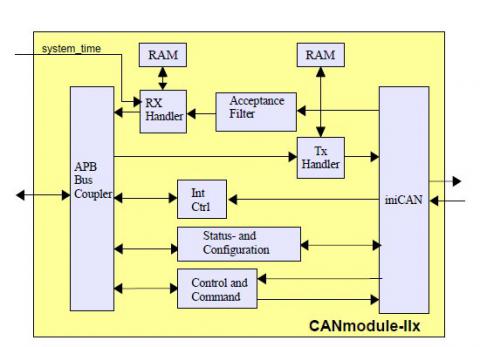 Full message filtering together with a transmit FIFO and a high priority transmit message buffer support a wide range of applications. An AMBA Advanced Peripheral Bus (APB) interface enables smooth integration into ARM based SOC's.