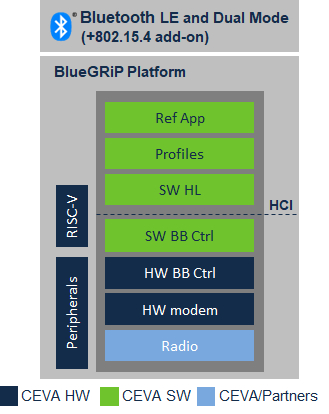 - Ceva-Waves Bluetooth 5.4 Low Energy Baseband Controller / Link Layer, software and profiles