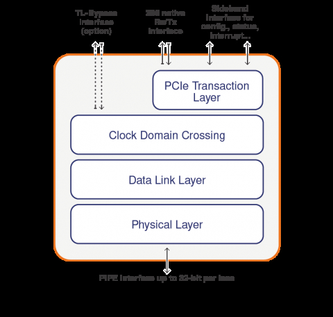 Block Diagram of the PCIe 3.1 / 3.0根端口,端点,双模,具有Native用户界面 的交换机端口Controller IP核