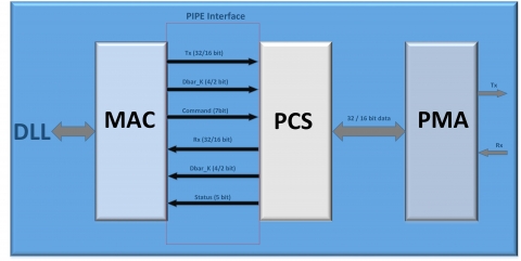 The PHY layer is essentially the PIPE (Physical Interface for PCIe Express). The designed PIPE interface follows the INTEL’s PIPE spec. This Intel's spec is being used by other vendors like Xilinx, Altera and PLDA with slight modifications in LTSSM and power management states. However the basic Interface mentioned in Intel's spec is maintained by all vendors and so our design.